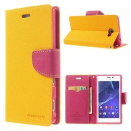 Osta Sony Xperia M2 älypuhelimeen sopiva tyylikäs keltainen / pinkki lompakko suojakuori.