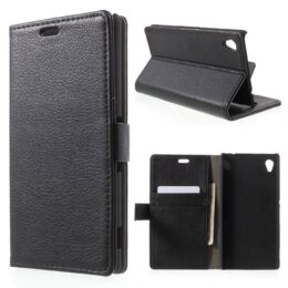 Mustalla lompakkokotelolla suojaat Sony Xperia M4 Aqua puhelimen naarmuilta ja kolhuilta.