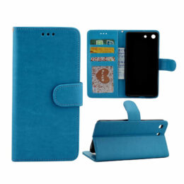 Sinisessä lompakkokotelossa säilytät kortit ja kuitit ja sillä suojaat Sony Xperia M5 älypuhelimen.