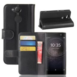 Suojaa Sony Xperia XA2 älypuhelin mustalla aidosta nahasta valmistetulla lompakkokotelolla.
