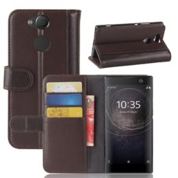 Puhelimenkuoret.fi nettikaupasta tilaat ruskean aidosta nahasta valmistetun lompakkokotelon suojaamaan Sony Xperia XA2 älypuhelinta.