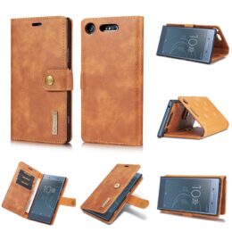 Suomalaisesta puhelimenkuoret.fi verkkokaupasta tilaat edullisesti ja nopealla toimituksella ruskean DG.MING nahkakotelon Sony Xperia XZ1 puhelimelle.