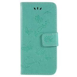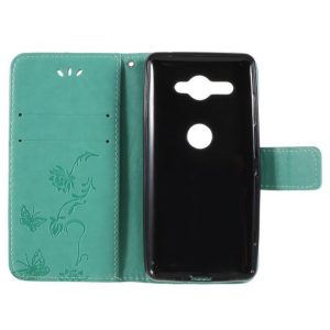 Suojaa Sony Xperia XZ2 Compact älypuhelin naarmuilta ja kolhuilta sinisellä lompakkokotelolla, jossa on kukkia ja perhosia.
