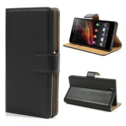 Tilaa aidosta nahasta valmistettu musta lompakkokotelo suojaamaan Sony Xperia Z älypuhelinta iskuilta, kolhuilta ja naarmuilta.