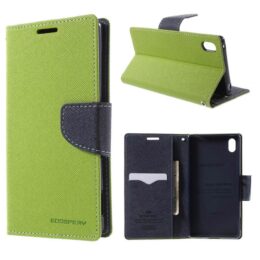 Suojaa Sony Xperia Z3+ älypuhelin vihreällä Goospery Fancy lompakkokotelolla.