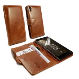 Suojaa Sony Xperia Z3 älypuhelimesi iskuilta ja kolhuilta laadukkaalla ruskealla Tuff-Luv Vintage nahka suojakotelolla.