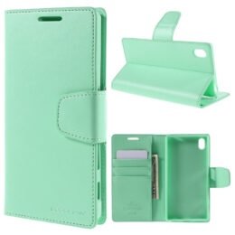 Suojaa Sony Xperia Z5 puhelin laadukkaalla ja tyylikkäällä syaanin värisellä Goospery Sonata lompakko suojakotelolla.