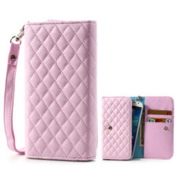 Puhelimenkuoret.fi verkkokaupasta tilaat tyylikkään vaaleanpunaisen yleismallisen Rhombus lompakkokotelon.