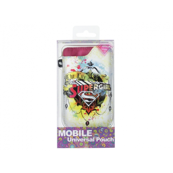 Valkoinen yleismallinen Supergirl suoja sopii useisiin eri puhelimiin. Suojaa puhelimesi Supergirl suojalla.