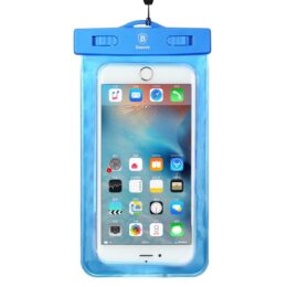 Laadukas sininen vedenkestävä Baseus suojapussi 5.5″ puhelimille ja sitä pienemmille puhelimille.