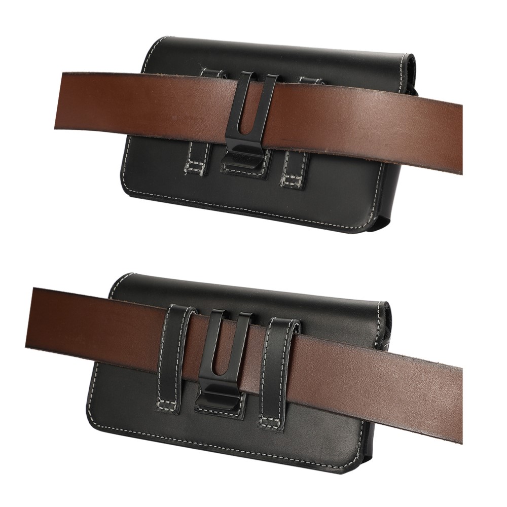 Laadukas aidosta nahasta valmistettu vaakalaukku vyökotelo, joka sopii useisiin eri puhelimiin.