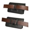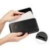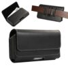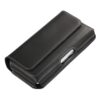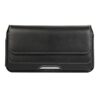 Laadukas aidosta nahasta valmistettu suuri musta vaakalaukku mallinen vyökotelo, johon mahtuu suurempikin puhelin kuorien kanssa.