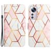 Vaaleat marmoripintaiset värisävyt ja graafisia muotoja kuvioituna Xiaomi 12 Lite 5G puhelinmallin suojakoteloon.