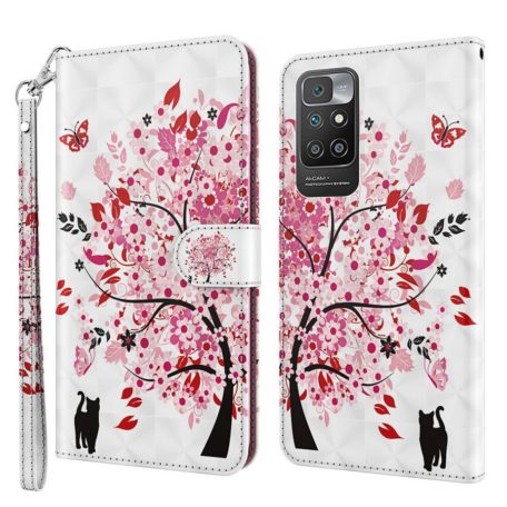 Pinkin sävyillä kukitettu puu valkealla pohjalla luo satumaisen tunnelman Xiaomi Redmi 10 NFC puhelimen suojakoteloon.