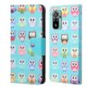 Xiaomi Redmi 10 NFC puhelimen turvaksi rikkoutumiselta suojakotelo, jossa on veikeän värikäs kuviointi pöllöhahmoilla.