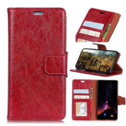 Xiaomi Redmi 5 Plus puhelimeen sopivassa punaisessa nahkakotelossa on kaksi korttipaikkaa, tasku, jalusta-toiminto ja magneettiläpällä sulkeutuva kansi.