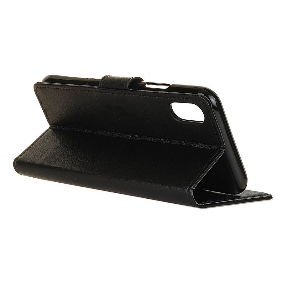Hyvännäköinen musta lompakkomallinen kotelo Xiaomi Redmi 9A puhelimelle, suojaa laitteeseen kohdistuvien osumien aiheuttamilta säröiltä.