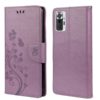 Heleän vaaleasävyisen violetti kotelo suojaksi Xiaomi Redmi Note 10 Pro puhelimelle, sievä kukka- ja perhoskuviointi kansissa.