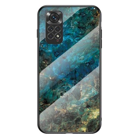 Xiaomi Redmi Note 11 puhelinta suojaava takakuori on kaunis kuin koru, sinivihreissä väreissä marmorikuvioituna.