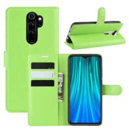 Vihreässä PU-nahasta valmistetussa lompakkokotelossa säilytät setelit, kortit ja kuitit ja sillä suojaat Xiaomi Redmi Note 8 Pro puhelimen tehokkaasti.